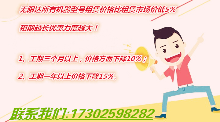 凡是租無限達旋挖鉆機的用戶即日起將體驗:一個月起租,3個月以上優(yōu)惠3~5萬,6個月以上優(yōu)惠5~8萬!